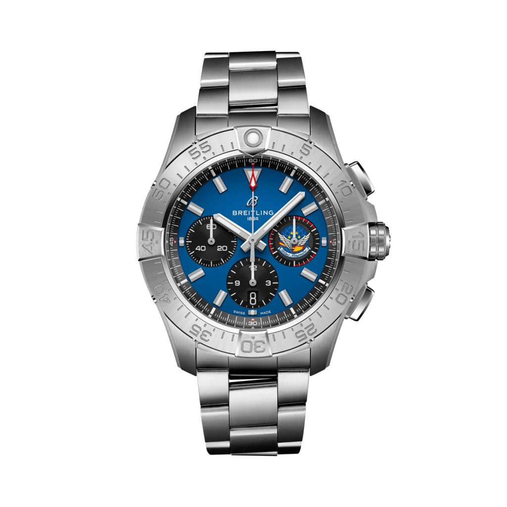 華麗なアクロバット飛行を披露し、大空に「夢・感動」を描く航空自衛隊のアクロバット専門のチーム、ブルーインパルス。本作は、アベンジャー B01 クロノグラフ をベースにて生まれた、チームに捧げる特別仕様の日本限定モデル。