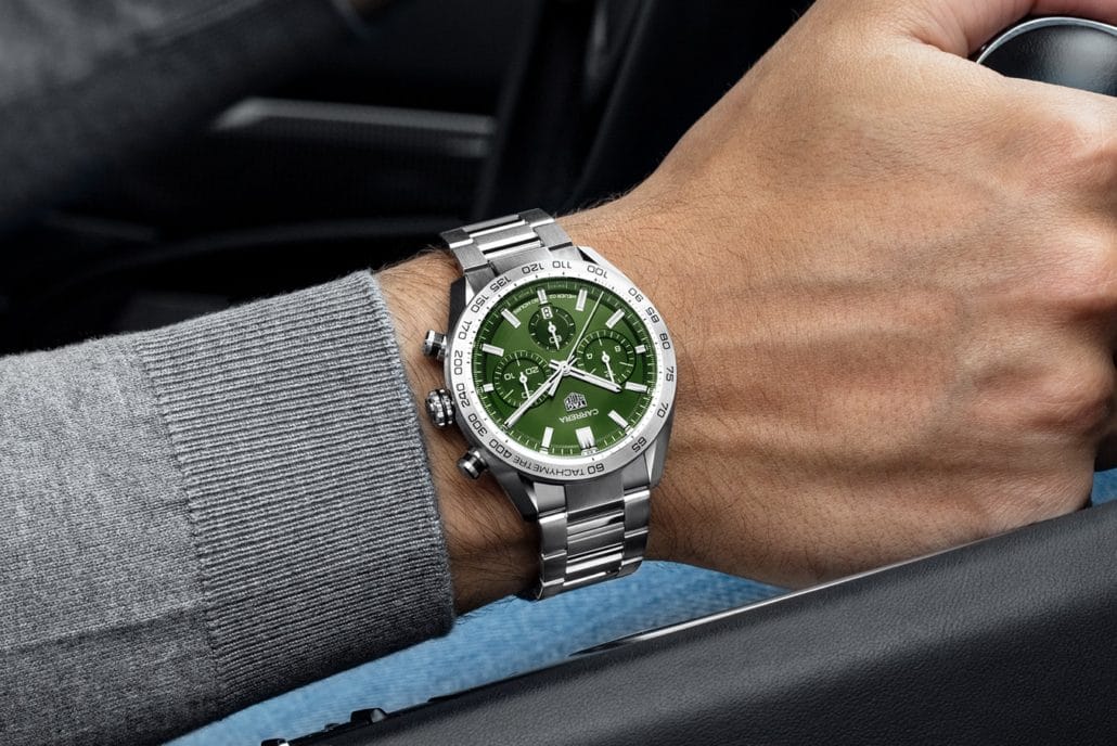 スポーティーでありながらもエレガントさも感じさせる落ち着いたグリーンダイアルの色合いはシーンを問わずお使いいただけます。
