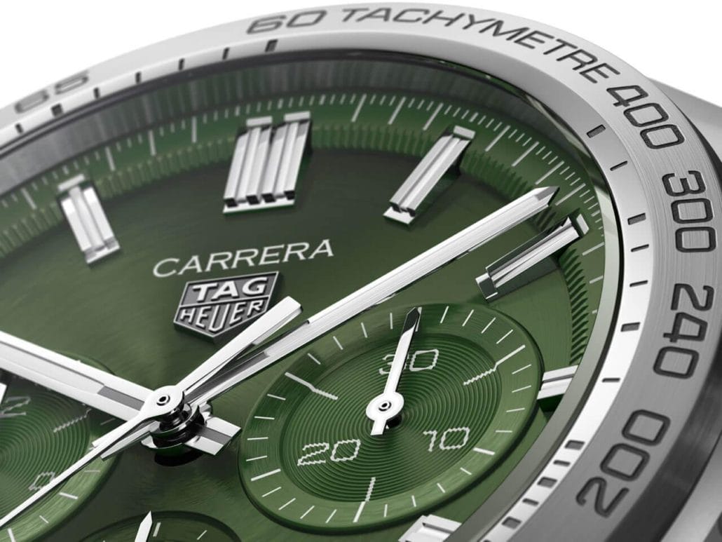 タグ・ホイヤー カレラ唯一であるグリーン文字盤のキャリバー ホイヤー02 スポーツクロノグラフをご紹介いたします。