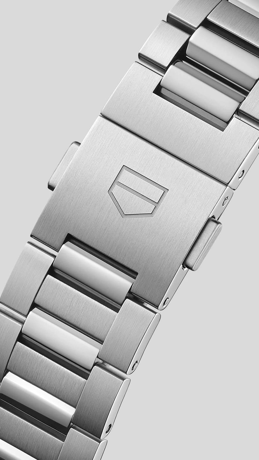 H型のヘアライン仕上げでバックルがダブルセーフティプッシュボタン付きとなり全体的に洗練されたデザインとなっております。