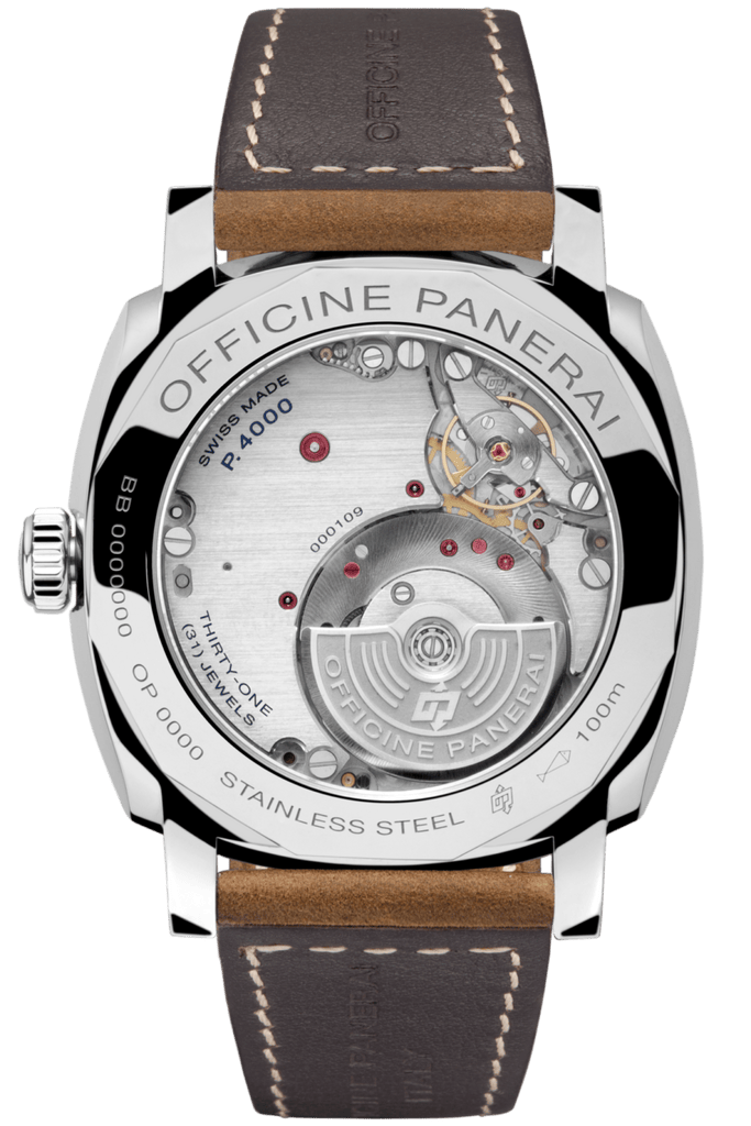 シースルーバックからはP4000ムーブメントのマイクロローターも楽しめます