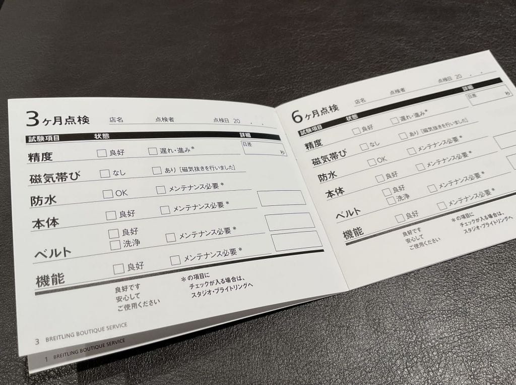 ブティックでご成約の際、『ブライトリング ブティック サービス』の冊子をお渡しします。