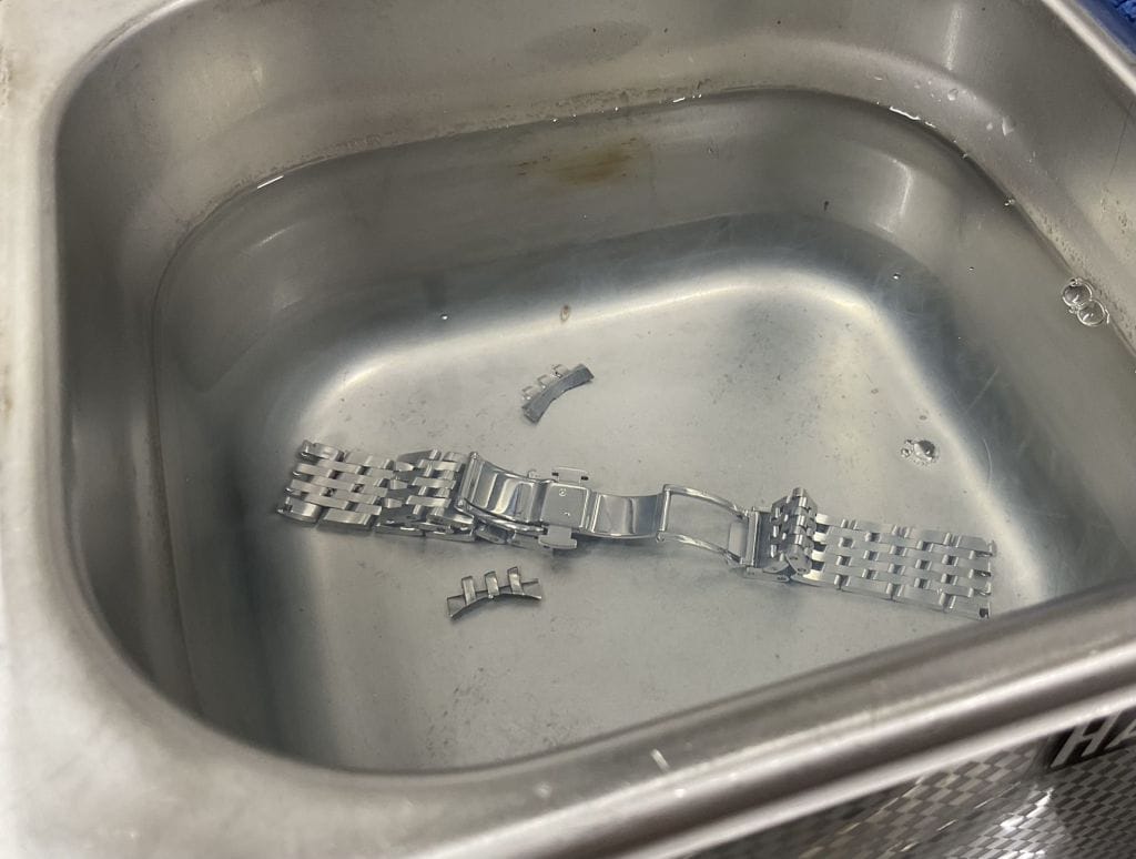 本体からブレスレットだけ外し、超音波洗浄で汚れをしっかり落としていきます。