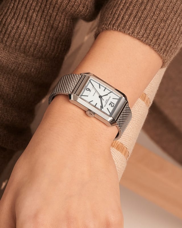 レクタングラー型ケースと細かく編み込まれたミラネーゼブレスレットの組合せがファッション性高くカッコ良いんですよ(^^)