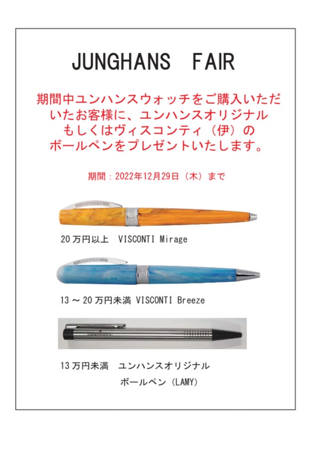 今年頑張った自分へのご褒美や大切な方へプレゼント、ペアウォッチにもユンハンスを手に入れてみてはいかがでしょうか