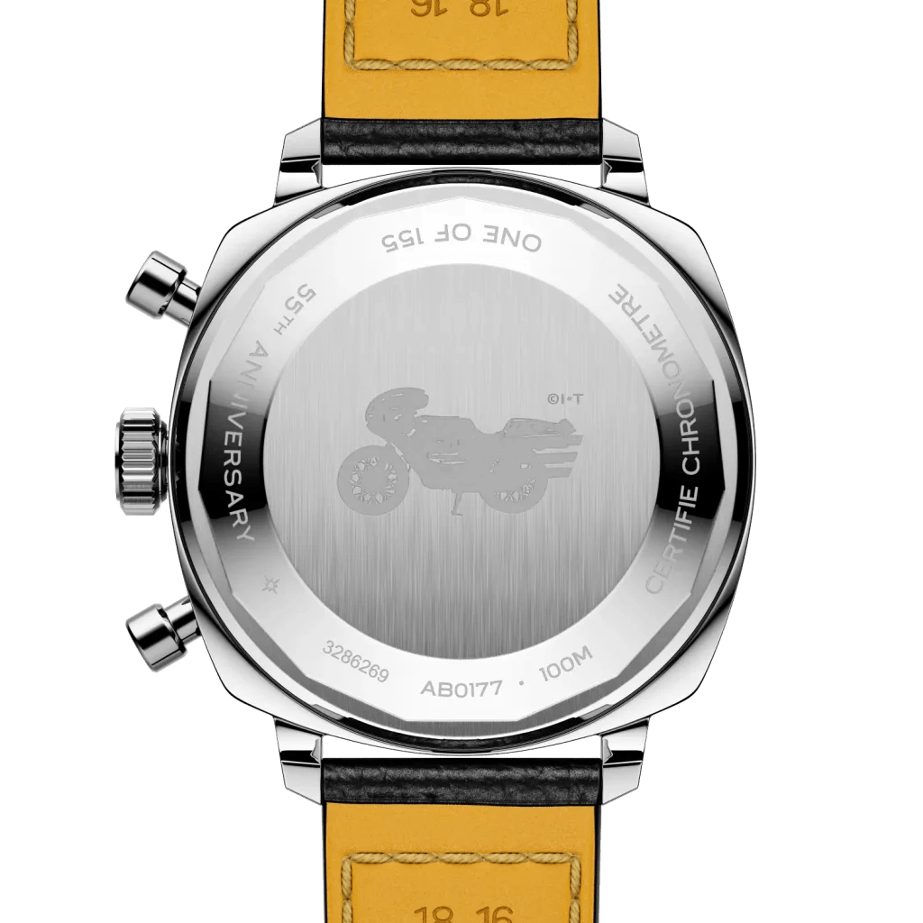 ケースバックには55周年を記念する【55THANNIVERSARY】、限定本数【ONE OF 155】のエングレイヴと、仮面ライダーの愛機であるサイクロン号が刻印されております。