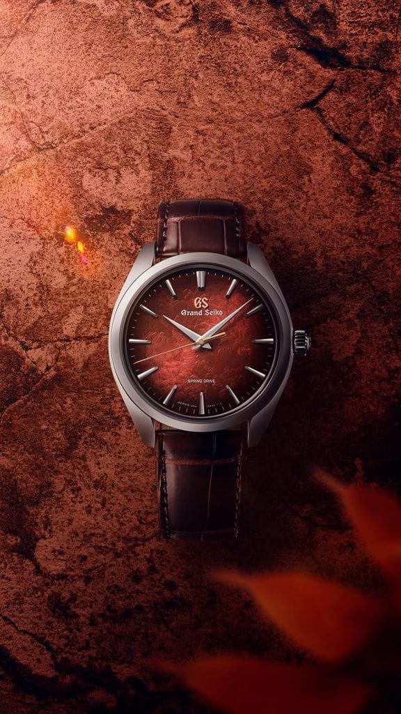 この限定モデルは、穂高連峰が朝日に照らされ、美しい紅葉が現れる様子をグラデーション文字盤で落とし込みました。
