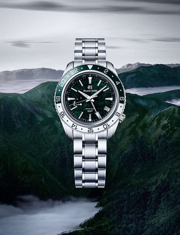 スプリングドライブモデルの製造地、信州にある穂高連峰の夏の鮮やかな情景から着想を得たグリーンが人気の1本