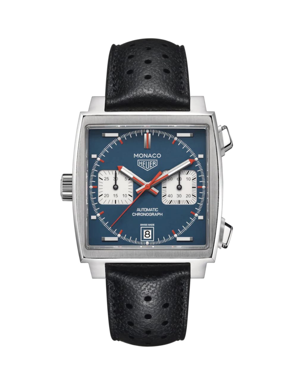 モナコは、モーターレーシングにインスピレーションを得て誕生したウォッチで、タグ・ホイヤー ならではの挑発的なルックスは、従来の時計デザインの固定概念を覆すデザインです。