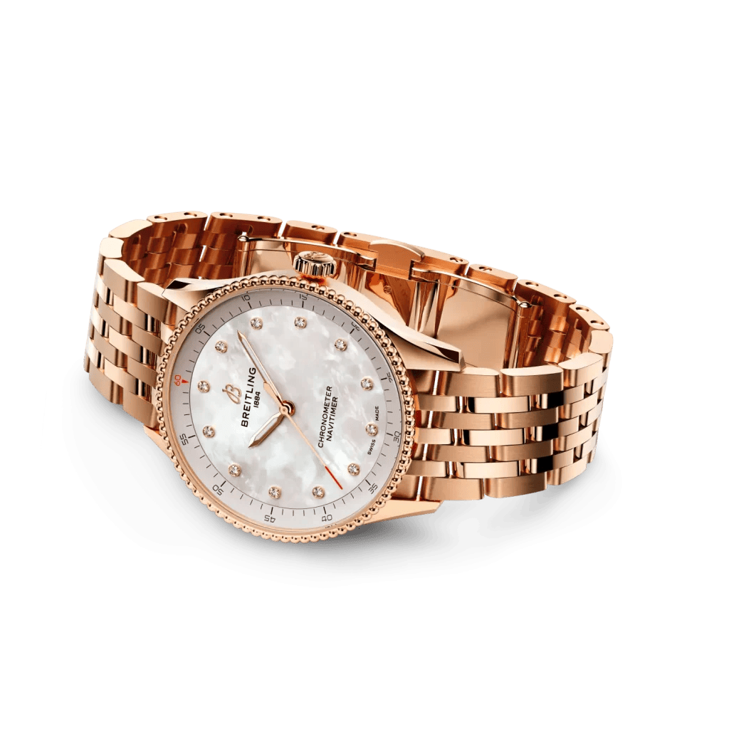 文字盤にはホワイトのマザーオブパール(MOP)を使用。