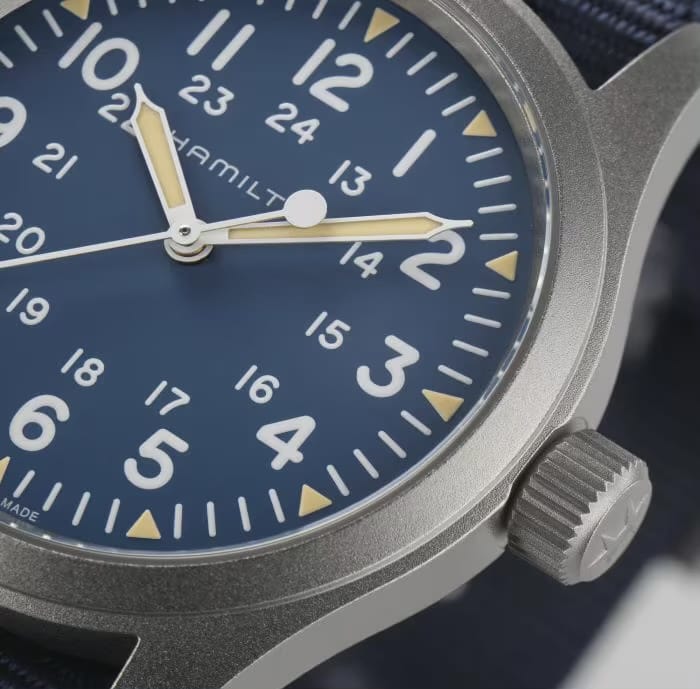 38mmの艶消しのステンレスケースに手巻きのムーブメントが搭載されている『カーキフィールド メカ』