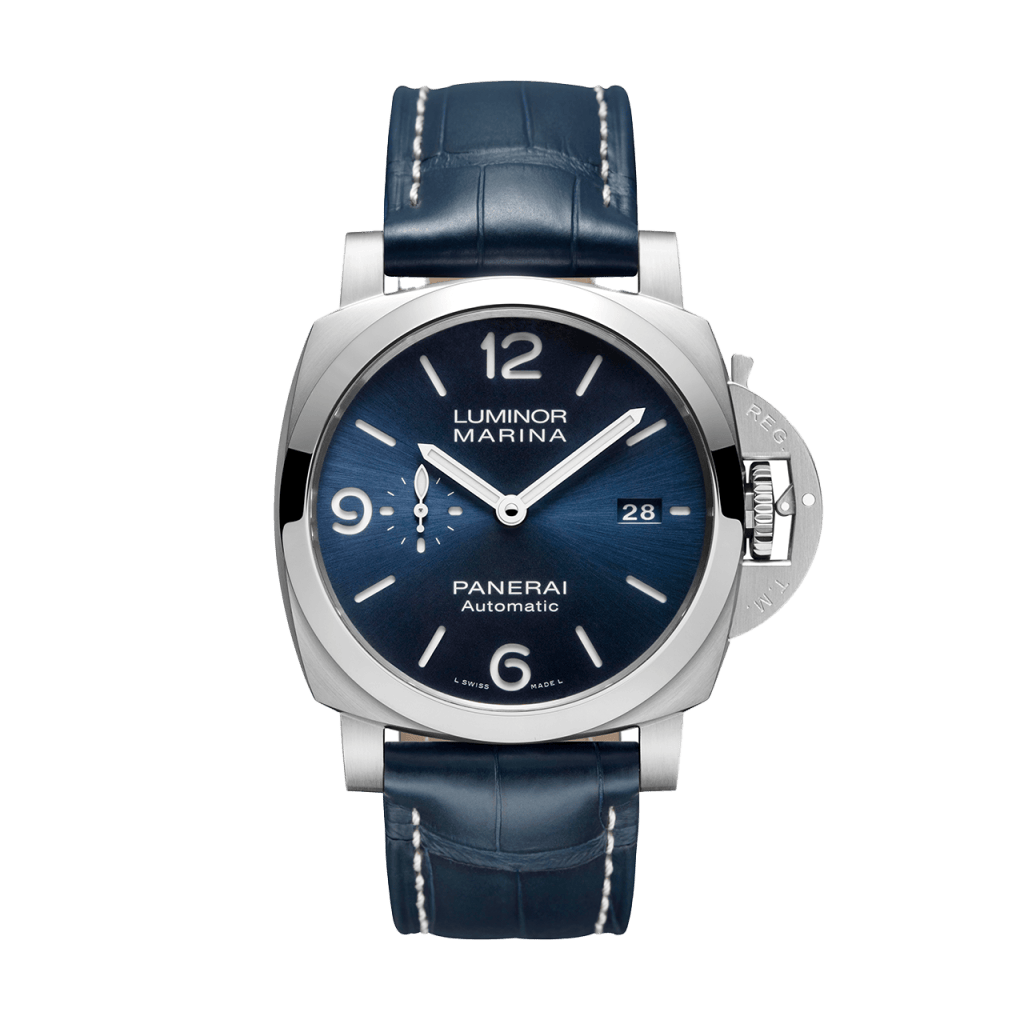 文字盤に合わせたアリゲーターのネイビーブルーも素敵です。