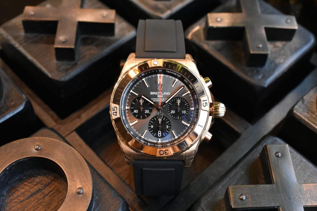 ゴールドは肌温度と一体感がありますので腕に乗せていても違和感なく着けられます。