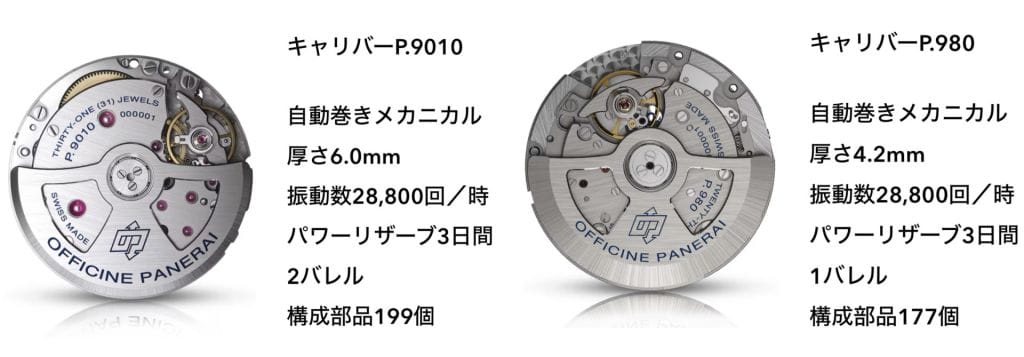 PAM1312にはキャリバーP.9010が搭載されており、新型PAM3312はP.980となります。