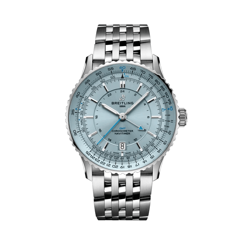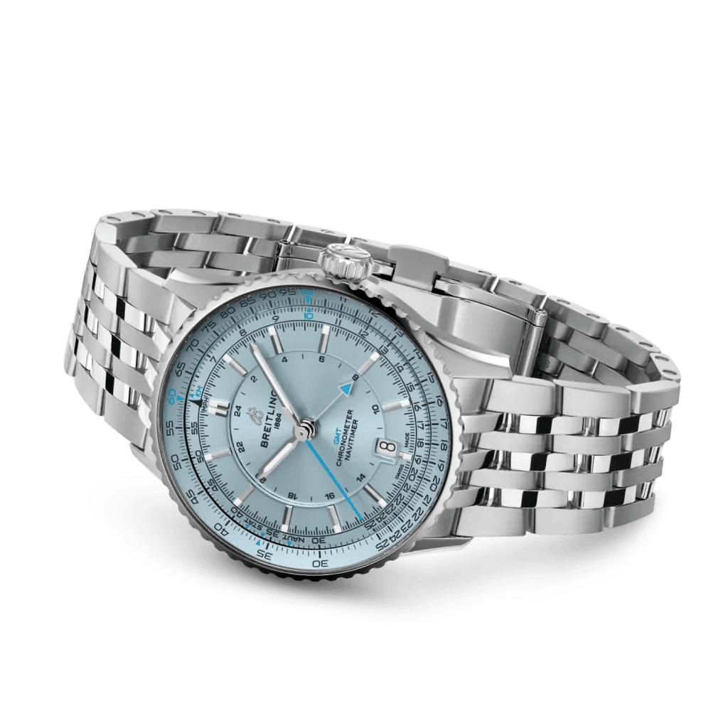 腕時計にとってのアイスブルーと言う色の立ち位置はかなり高い位置に置かれているイメージの強い方も多くいると思います。ブライトリングでは、今回ご紹介のGMTモデルの他にも3針、クロノグラフ、パーペチュアルカレンダーもアイスブルー文字盤のモデルがございます!