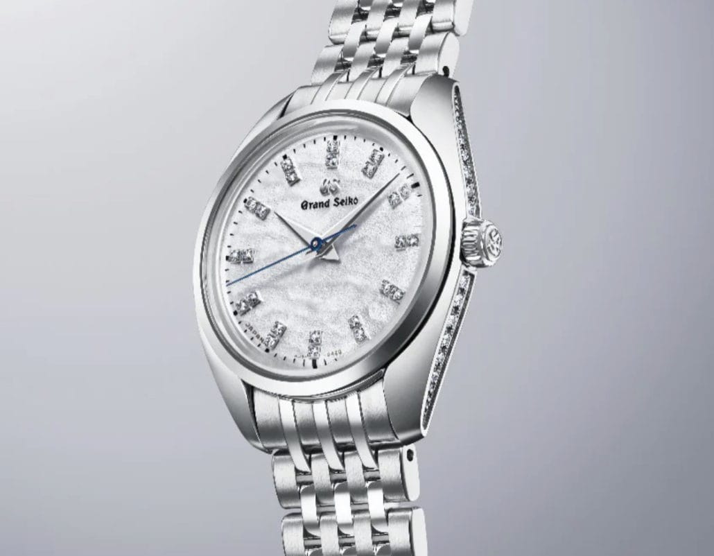 クオーツとスプリングドライブモデルが作られる信州 時の匠工房にほど近い諏訪湖が真冬に全面氷結した時に起きる神秘的な自然現象『御神渡り』をイメージしたダイヤルが特徴です