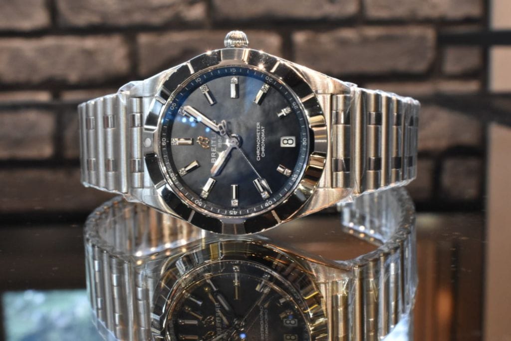 インデックスにはダイヤモンド、文字盤は黒蝶貝が施され
