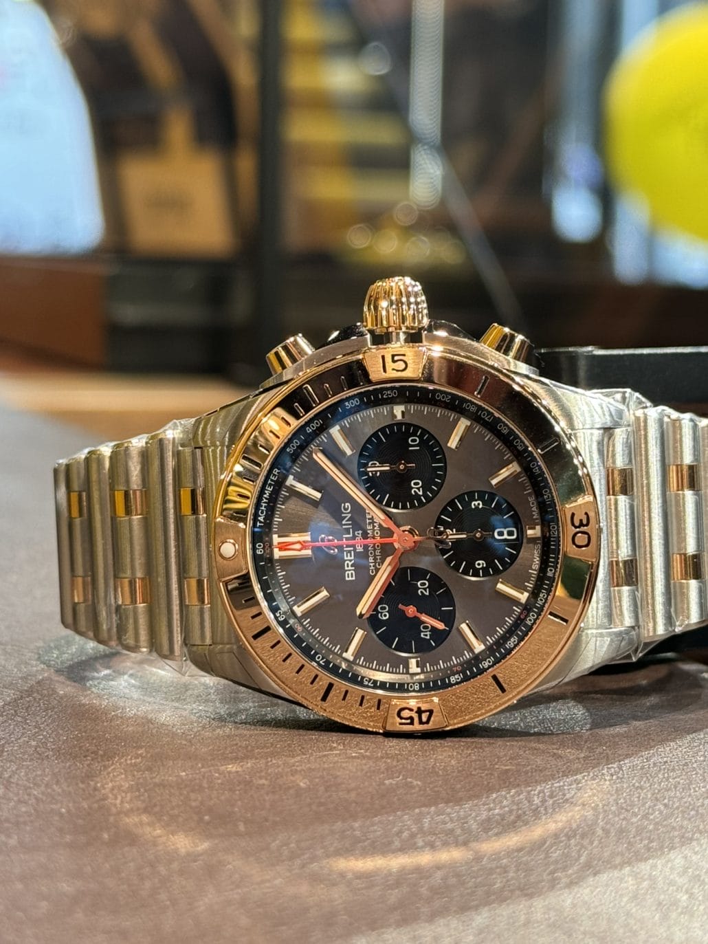 クロノマット B01 42 18Kレッドゴールド×ステンレスコンビモデル。