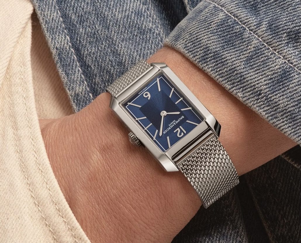 レクタンギュラー型のケースとミラネーゼブレスレットの組合せがおしゃれなハンプトン