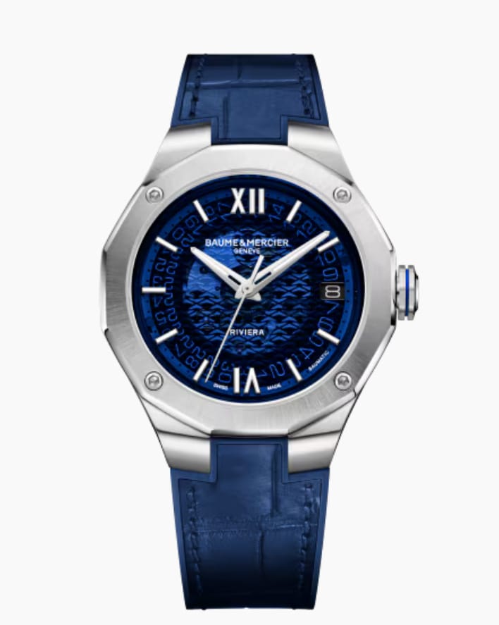 吸い込まれてしまいそうなほどに透き通ったスモーキーブルーのサファイアダイアルが特徴のリビエラ。