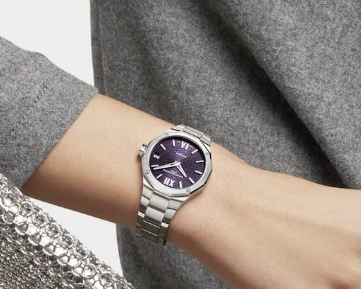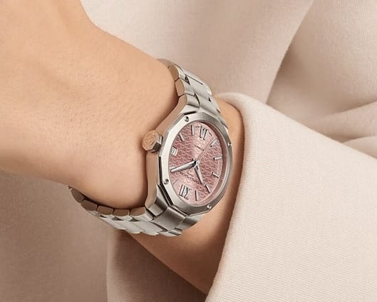 ゴールドカラーのダイヤルとリビエラの特徴である12角形のベゼルにセットされたダイヤモンドのさり気ないきらめきが魅力的なMOA10730