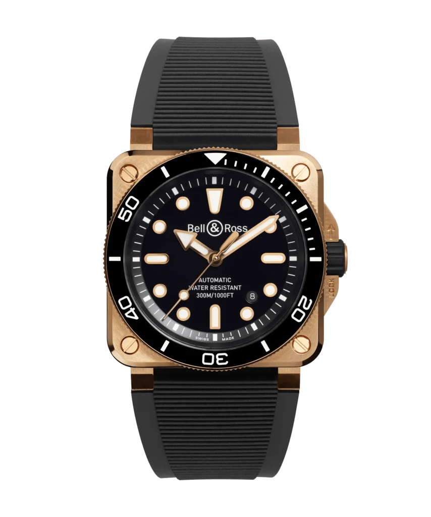 Bell &Rossが手がける2026年モデル「BR03 ダイバー ブラック ブロンズ」は、艶やかなブラックカラーダイヤルに、ゴールドトーンを帯びたブロンズケースとの相性が抜群なモデルです。