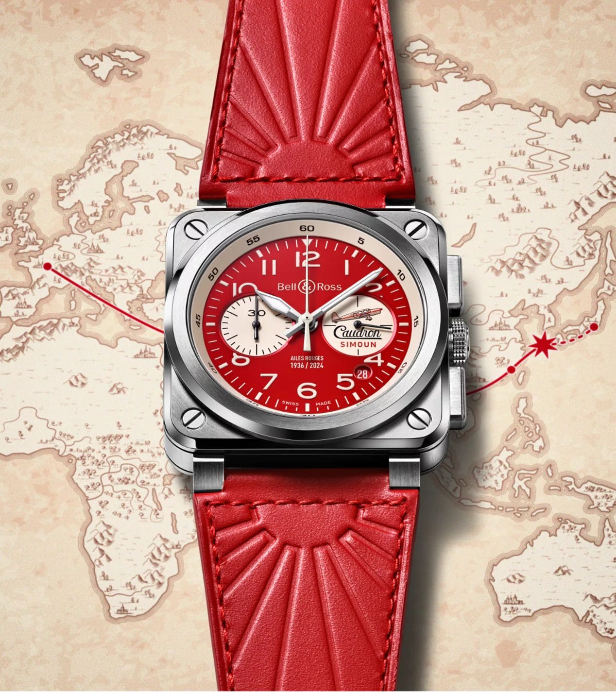 BR-03クロノ エル ルージュが誕生した背景には、日本とフランスの航空ストーリーがあり、1936年にフランスの飛行士アンドレ・ジャピー氏が搭乗したコードロンシムーン機へのオマージュであり歴史的な絆に祝福しております