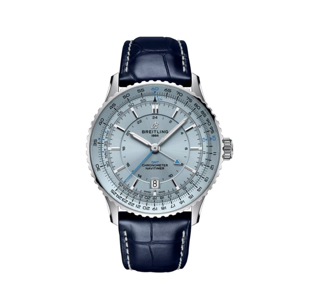 同時発売の『ナビタイマー オートマチック GMT 41』のアイスブルーダイヤルと並べてご覧いただけます!