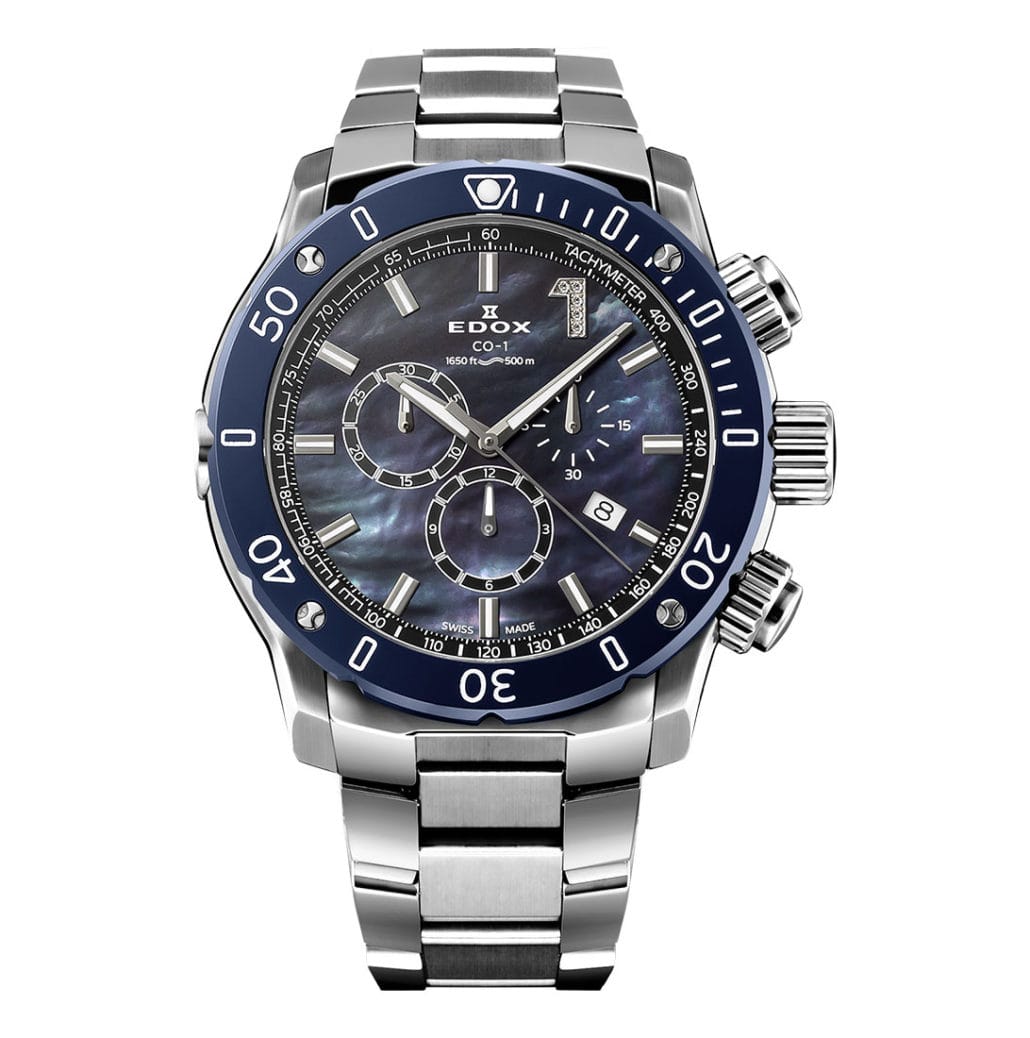 クロノオフショア1シリーズより発売いたしましたこちらのモデルは100本の限定モデルとなりましてMOPダイヤルでの仕様となり見る角度によって表情を変えていくのが特徴です。