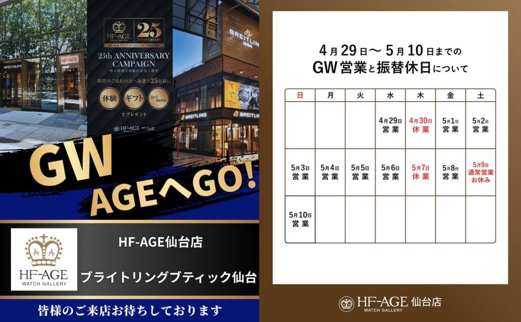 ですので日本から海外へ行った際に日本時間と現地時間がわかる便利機能だと思ってもらえれば大丈夫です。今年の長期連休は海外へという方は頼もしい相棒にGMT搭載モデルはいかがでしょうか?
