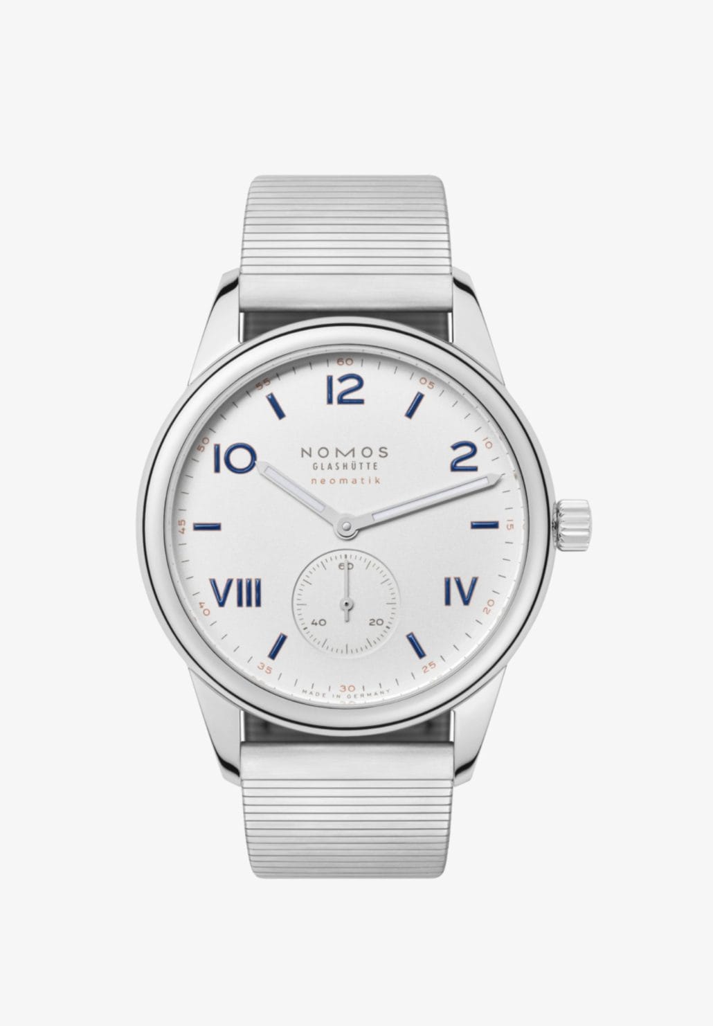 ノモス のクラブキャンパスは、一見シンプルに見えますが、バーインデックス、アラビア数字、ローマ数字の3種のインデックスを使ったこだわりのデザインが特徴です。