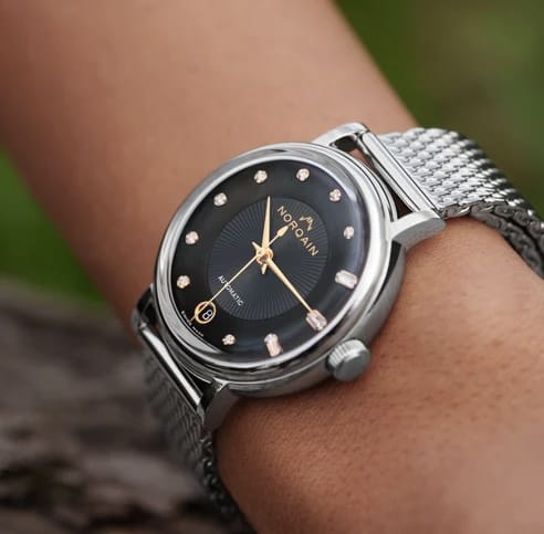 1960年代のビンテージを基調にしたデザインで人気のフリーダム60よりブラックマザーオブパールの文字盤を備えたレディースモデル。