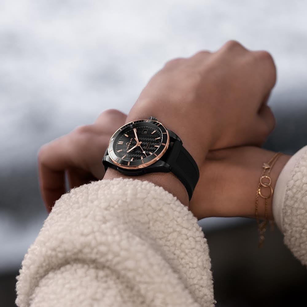 男性でも着けていただけるサイズ感で、男女問わず人気のモデルです。