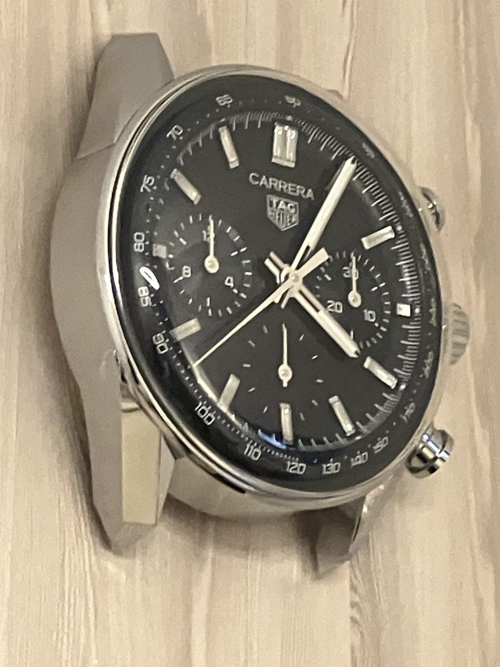 商談は、カレラ クロノグラフ グラスボックスの壁掛け時計を見ながらスタート。