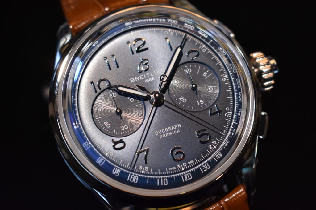 クロノグラフ針が通常ですと1本ですがこちらは2本あります。
