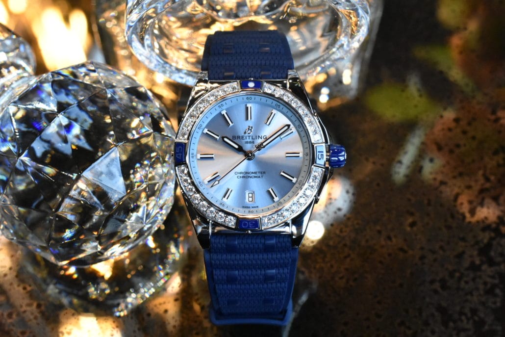 文字盤の涼やかなアイスブルーカラーも、その美しさに拍車をかけるひとつです。