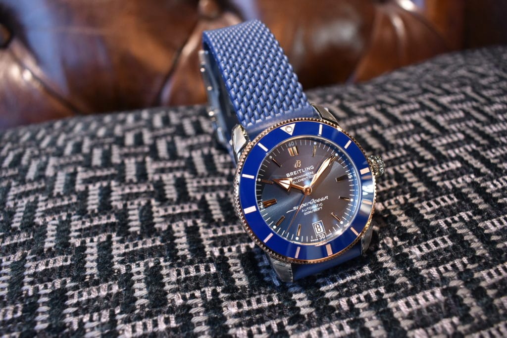 文字盤やベゼル、ラバーストラップまでブルーでまとめ、