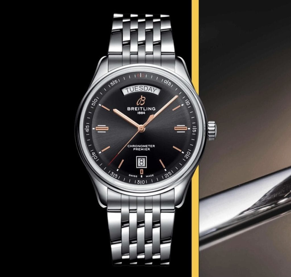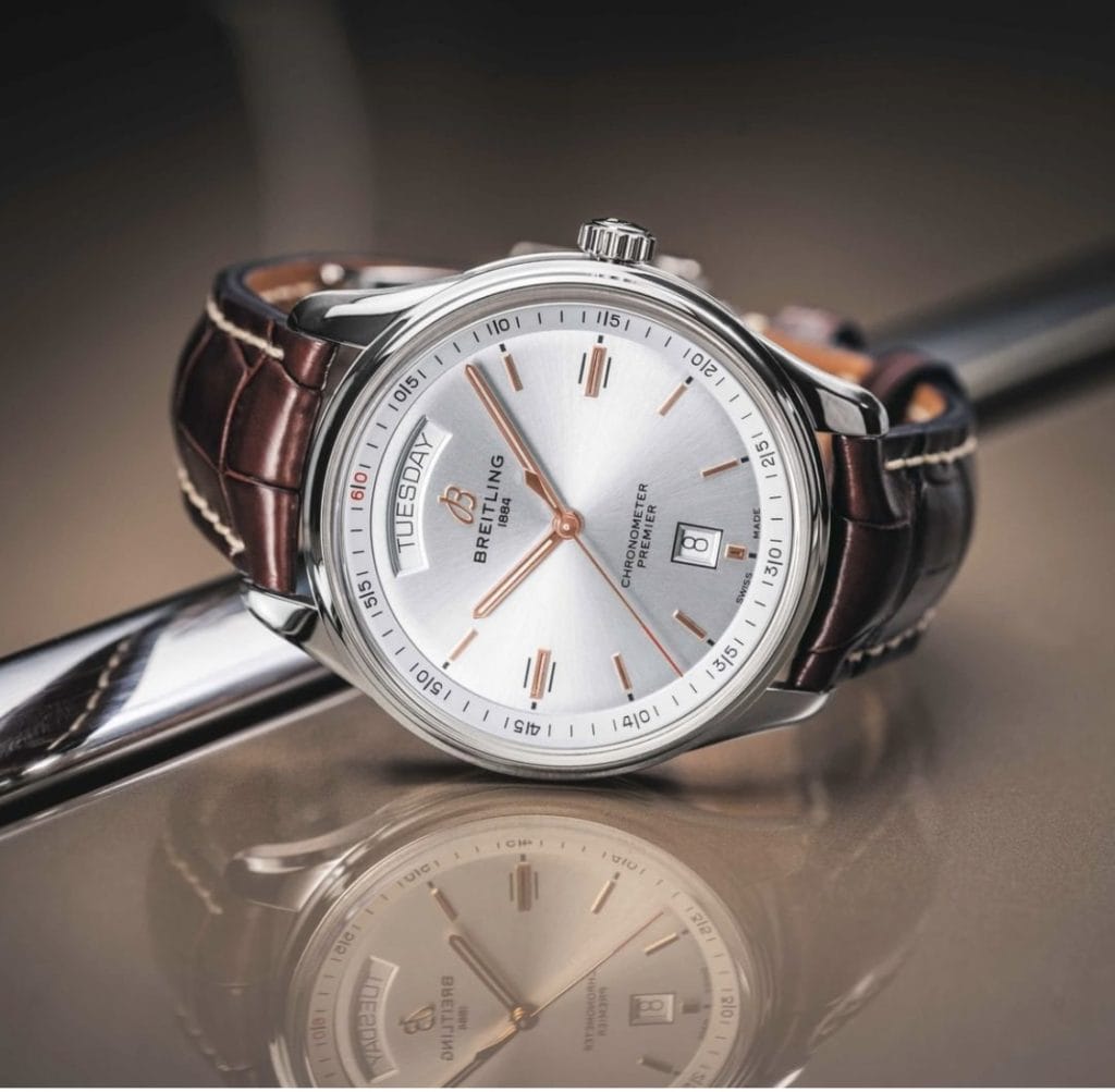 時、分、秒針に日付けと曜日表示も備えたプレミエ