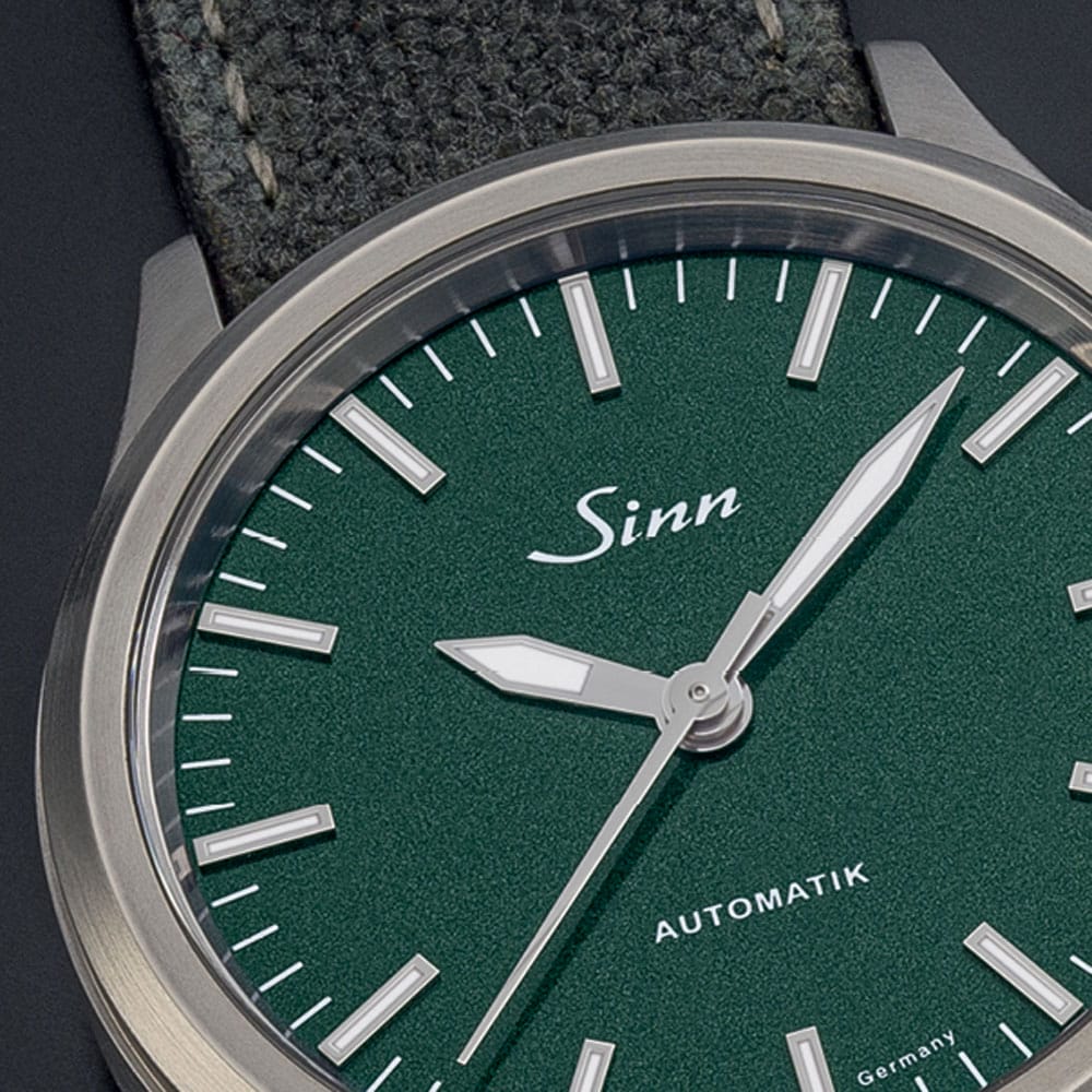 文字盤はメタリックなニスで仕上げられているエメラルドグリーンの文字盤。