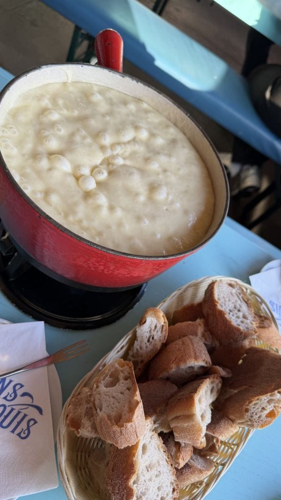 さあ、スイスと言えばチーズフォンデュ。