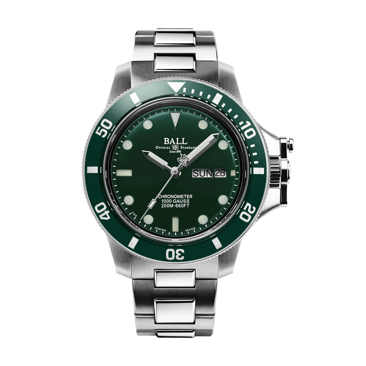 ハイスペックを追求し続けるエンジニアハイドロカーボン シリーズの魅力を凝縮した集大成モデル。「スプリングロック」、「スプリングシール」、「アモータイザー耐衝撃インナーリング」、「ミューメタル・インナーケース」 などボール ウォッチが今まで開発してきた独自技術を満載しています。また丸、三角形の文字盤インデックスを初めてマイクロガスライトで実現しています。