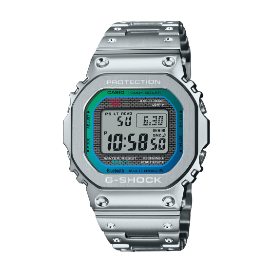 1983年の誕生以来タフネスを追求し、40周年を迎えたG-SHOCKのフルメタルシリーズから、レインボーカラーをアクセントにしたモデルです。