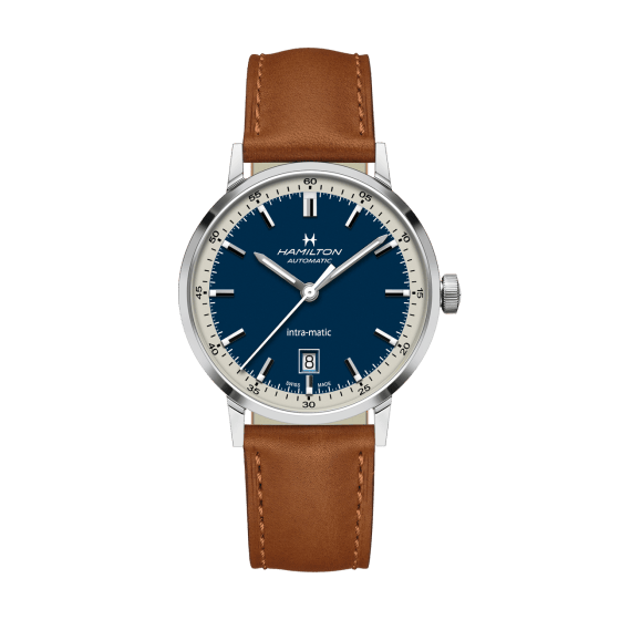 ツートンカラーのダイヤルがアイコニックな「イントラマティック オート」は、オンオフ様々なシーンにぴったりのクラシックなスタイル。非磁性合金Nivachron製ヒゲゼンマイを採用したハミルトン専用H-10ムーブメントを搭載し、高い精度を約束します。ビンテージルックと最新のウォッチメイキング技術が融合したタイムピースです。