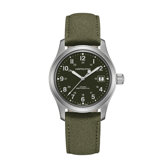 無駄をそぎ落とした機能美を追求したカーキ フィールド オフィサー ハンドワインディング。頑丈で機能的、オーセンティックな時計を好む方におすすめのモデルです。レザーまたはキャンバスのストラップから選ぶことができます。