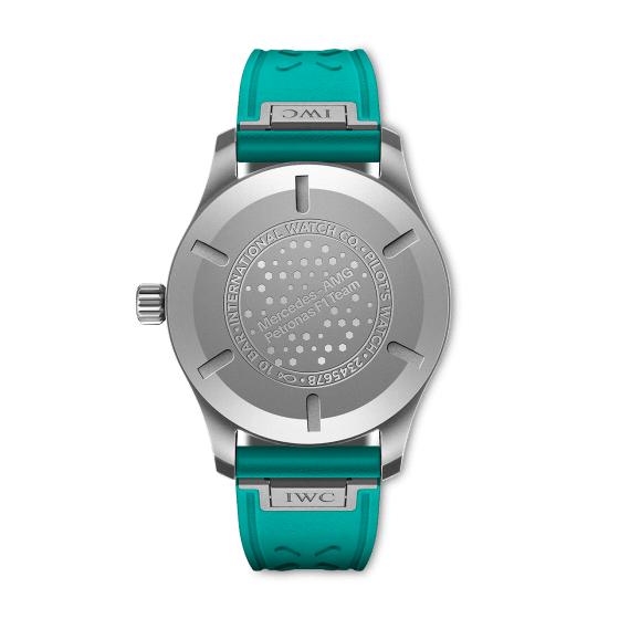 2013年、IWCシャフハウゼンはメルセデスAMG・ペトロナス・フォーミュラワン・チームの「公式エンジニアリング・パートナー」となりました。「パイロット・ウォッチ・マークXX “Mercedes-AMG PETRONAS Formula One™ Team”」は、IWCが長年のモータースポーツパートナーのために製作した3つ目の公式チームウォッチです。40mmのケースは、軽量で極めて高い剛性を誇るグレード5チタン製。あらゆる金属の中で最も高い強度比を誇るチタンは、自動車工学の分野でも、エンジンバルブなど極度の負荷がかかる自動車部品の製造に使用されています。機械加工とサンドブラスト加工を施した表面は、美しいグレーがかった光沢を放ちます。チームのシグネチャーカラーであるグリーンの数字とインデックスがブラックの文字盤とのコントラストを生み出し、時・分・秒の針には同じグリーンのスーパールミノバ®が塗布されています。ケース内部で作動するIWC自社製キャリバー32111は、120時間のパワーリザーブを備えた自動巻きムーブメント。10気圧防水で、EasX-CHANGE®ストラップチェンジシステムを備えたペトロナスグリーンのラバーストラップが付属しています。