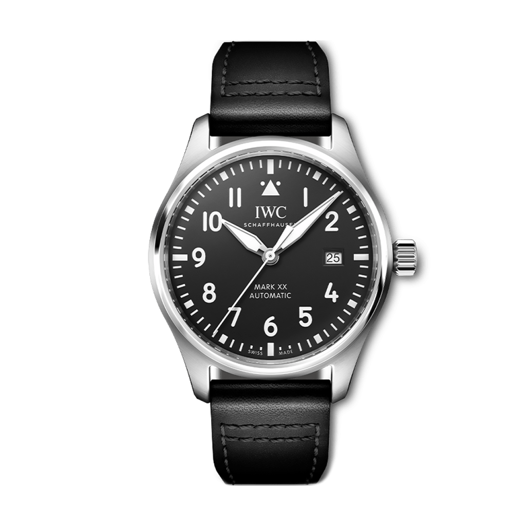 シンプルを極めた美しさ。「マーク XX」は、パイロット・ウォッチのデザインと技術的な機能性の真髄を抽出し、純粋な形で表現したタイムピースで、伝説的な傑作「マーク 11」を継承するモデルです。1948年に英国空軍の航空士とパイロットのためにIWCが開発した「マーク 11」は高い精度と耐磁性を備え、計器としての役割を果たすものでした。「マーク XX」のケースは直径40mmで、堅牢かつ耐食性に優れたステンレススティール製です。ブラックの文字盤には、ロジウムメッキの針が配されています。文字盤の上ではホワイトの数字とインデックス、そして12時位置のトライアングル・インデックスが明瞭なコントラストを成し、夜光塗料を施したディテールがどのような明るさの環境の下でも視認性を確保します。内部では自動巻き機構を装備したIWC自社製キャリバー32111が正確に時を刻み、120時間のパワーリザーブを提供。フロントガラスは特にしっかりと取りつけられているため、急激な気圧変化の際にもケースから外れることがありません。10気圧防水。ピンバックルが付いたブラックのカーフスキン・ストラップには「EasX-CHANGE®」システムを採用し、特別な工具を使わずに簡単に別のストラップと交換することができます。