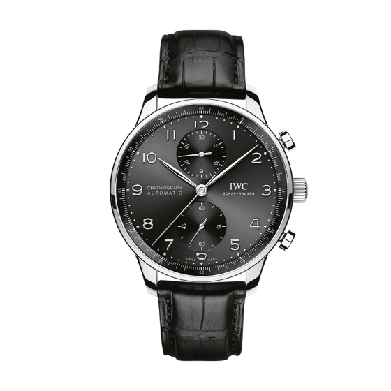 「ポルトギーゼ・クロノグラフ」は、IWCシャフハウゼンの最もアイコニックなモデルの一つです。41mmというコンパクトな直径で、どんな腕にもフィットし易いサイズですが、スリムなベゼルにより、着用時には実際よりも大きく見えるタイムピースです。端正で機能的な文字盤には、アラビア数字とスレンダーなリーフ針が配置されています。1/4秒単位の目盛りをプリントした特徴的なインナーリングは、計測時間の正確な表示を可能にするだけでなく、腕に着用できる高精度の航海用計器という「ポルトギーゼ」の原点をも想起させます。このモデルには、ステンレススティール製ケース、ブラックの文字盤、ロジウムメッキの針およびアップライト・インデックスが採用され、ブラックのアリゲーター・ストラップが配されています。スポーティーでエレガントなクロノグラフの内部で駆動力を生み出すのが、IWC自社製キャリバー69355です。サファイアガラスのシースルー裏蓋を通して、伝統的なコラムホイール・デザインを持つ堅牢かつ正確なこのクロノグラフ・ムーブメントを鑑賞できます。