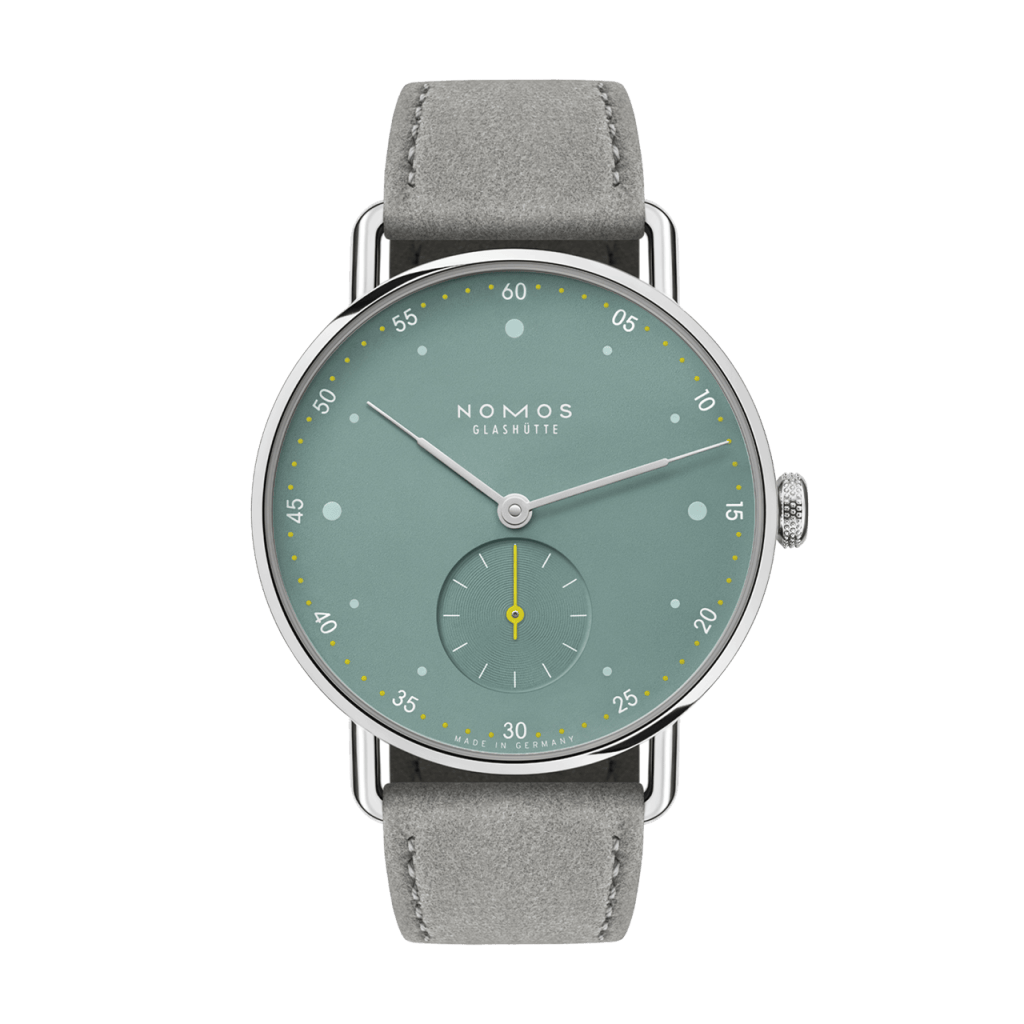 マーク・ブラウンがデザインした手巻き腕時計。文字盤のセージ色は、大海原と銅屋根に覆われた青錆を連想させます。滑らかなワイヤーのラグを持つステンレススティール製ケースは、潮風になびく大都市を表現しています。メトロ33・セージは5気圧防水で、ノモス・アルファ・キャリバーを搭載しています。小ぶりで都市生活にマッチする機械式腕時計です。