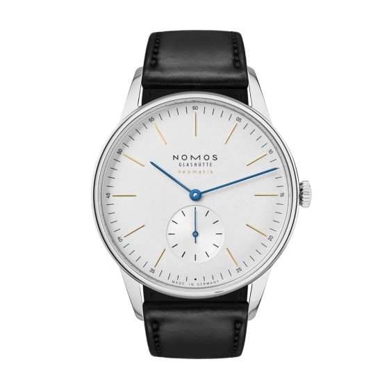 エレガントでスレンダーなケースにバーインデクスデザインの「オリオン ネオマティック」は伝統の青針とゴールドインデクスで安心感を与えてくれます。 存在感ある39㎜径/8.7㎜厚の薄型ケースには自社開発の超薄型自動巻きのムーブ「DUW3001」は欠かせません。 オンオフ共に活躍してくれる飽きのこない時計に仕上がっており、サファイヤクリスタルバックからも美しいムーブを覗くこともできます。 分マーカーに数字が入ったダイヤルがスタンダードオリオンと違いです。
