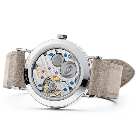 ノモス社の最定番モデルより一回りケースサイズを小さくした33mm径モデル。 女性や腕の細い方でも合わせやすい時計サイズです。 長年に渡り数々の賞を受賞してきた「タンジェント」はシンプルな文字盤、スリムでエレガントなケースは創業以来変わらない飽きのこないバウハウスデザインです。 そして進化し続ける高精度な手巻きのαムーブメントを搭載しています。 美しさは文字盤・ケースにとどまらず、裏蓋サファイヤクリスタルガラスより覗けるムーブメントパーツのサンバースト仕上げや伝統の3/4プレートに施されたグラスヒュッテストライプ加工にまで及んでいる逸品モデルです。